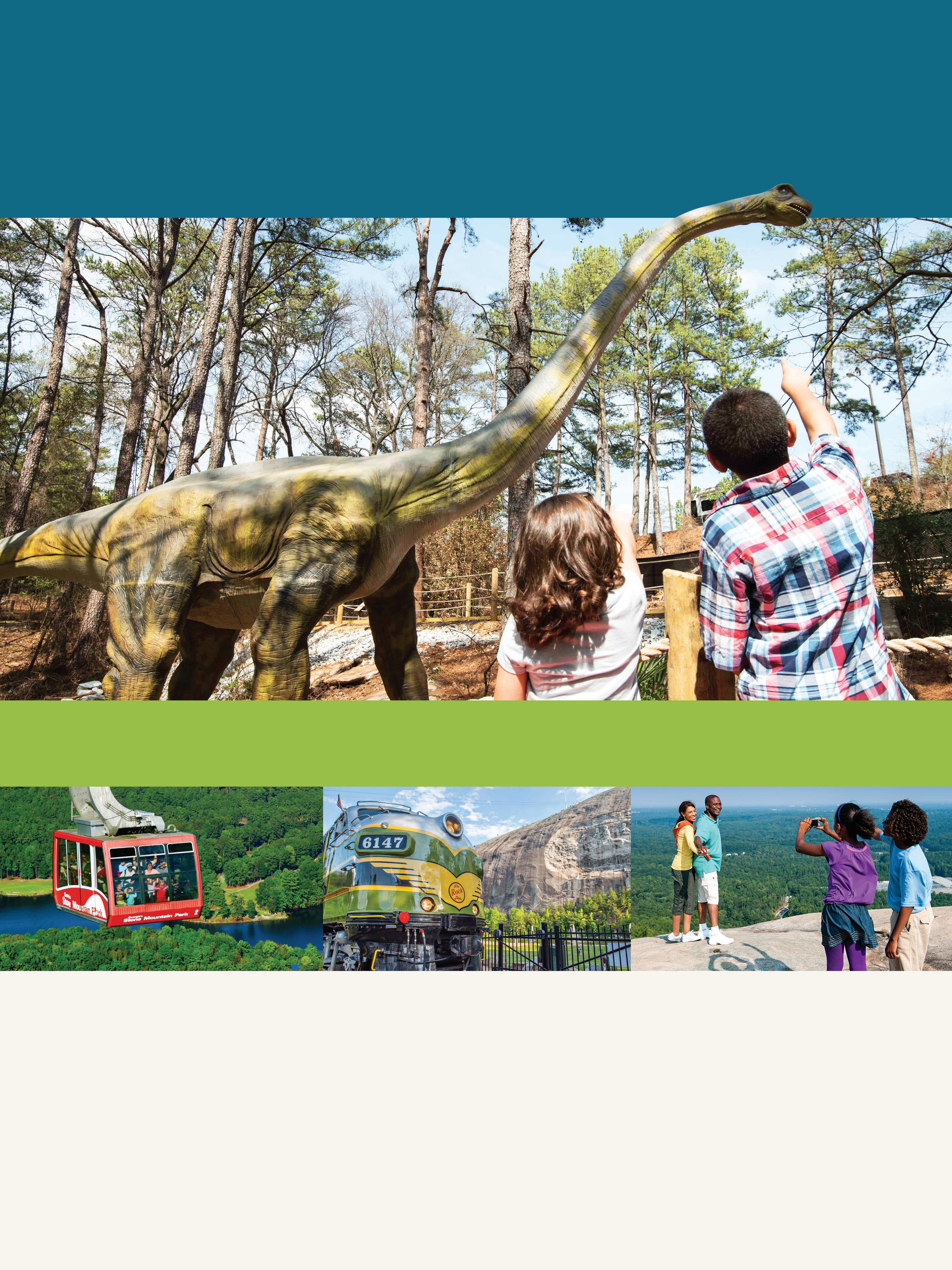 COME PLAY, STAY AND GET AWAY. As Georgia’s number one attraction, Stone Mountain Park offers a 3,200-acre natural wonderland — full of year-round excitement for every member of the family. The world’s largest piece of exposed granite is just the beginning of the unique attractions you’ll find at Stone Mountain Park. Back by Popular Demand! Check out Dinosaur Explore – an interactive prehistoric creature experience. Featuring more than 20 life-size dinosaurs, moving and roaring just like their ancient ancestors. Join in a dino dig, pet a baby dinosaur or meet a fierce T-rex in training! Located just 15 minutes from downtown Atlanta, our attractions and accommodations options fit every family’s wants and needs. For complete information, including special Marriott vacation packages, please visit stonemountainpark.com or call 770.498.5690.