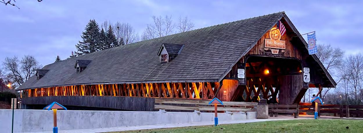 Nicknamed “Michigan’s Little Bavaria,” Frankenmuth takesholidaycheerseriously.Home toBronner’s, theworld’slargestChristmasstore,itoffersmore ornaments and lights than you could imagine. Winter visitors stroll through streets lined with German-style chalets, enjoy hearty Bavarian meals, and soak in the glowofsmall-townholidayspirit.