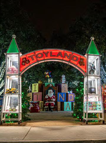 MusicCity embraces theholidays withSouthern charm.At theGaylord OprylandResort, nearlythree millionlights,themeddisplays,andice sculptures wow visitors. Downtown, honky-tonks mix live countrytunes withholiday cheer,while nearbyBelle Meade Plantation decks its halls in Victorian splendor. Nashville proves that holiday spirit comes with a little rhythm,too.