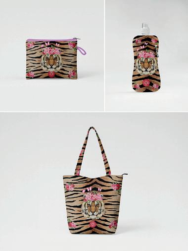 • Set includes a Water Bottle, Shopper and Pouch in the same design