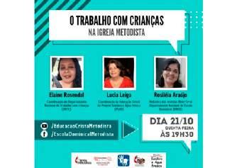 No dia 21 de outubro, aconteceu a live sobre o trabalho com crianças na Igreja Metodista. A transmissão foi realizada pelo canal no YouTube Educação Cristã Metodista e na página do Facebook da Escola Dominical. A partir da escuta da voz das crianças, houve uma reflexão sobre os diferentes espaços e possibilidades para que todas as crianças sejam acolhidas, respeitadas e valorizadas.