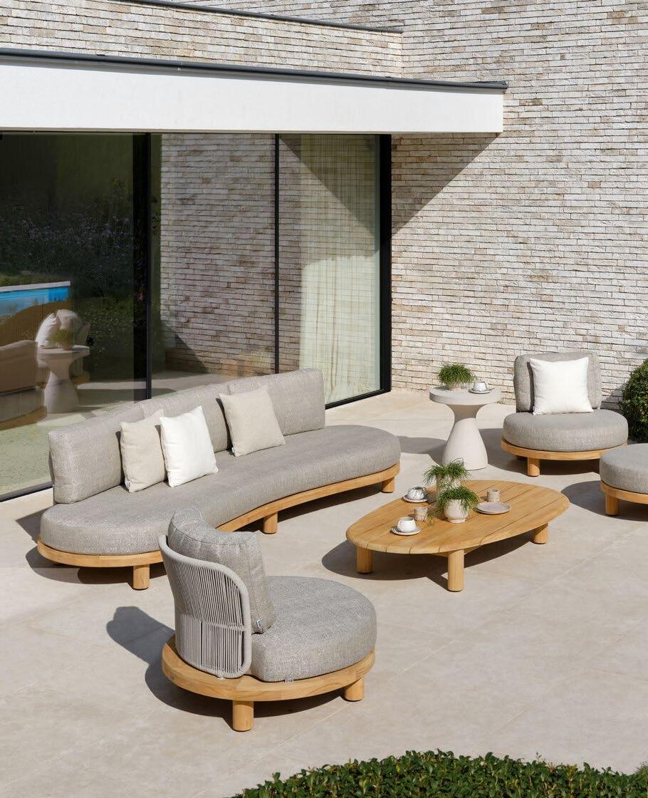 Laat je inspireren door Donato teak en mix en match de mooiste materialen en stoffen. Combineer authentieke teak met weerbestendige rope en selecteer de zachtste stoffen uit onze All Weather collecties. Op maat van jouw buitengenot.