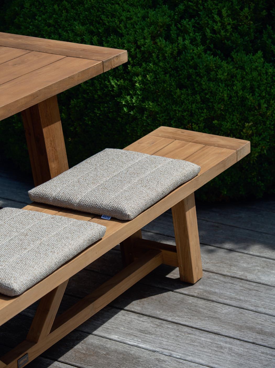 Ga voor een eeuwig vakantiegevoel in jouw tuin met de Beauville tuintafel en -banken van Bristol à la carte. Verzoen comfort met elegant design voor een buitenbeleving die elke dag opnieuw aanvoelt als een ontspannende reis in het Zuiden.