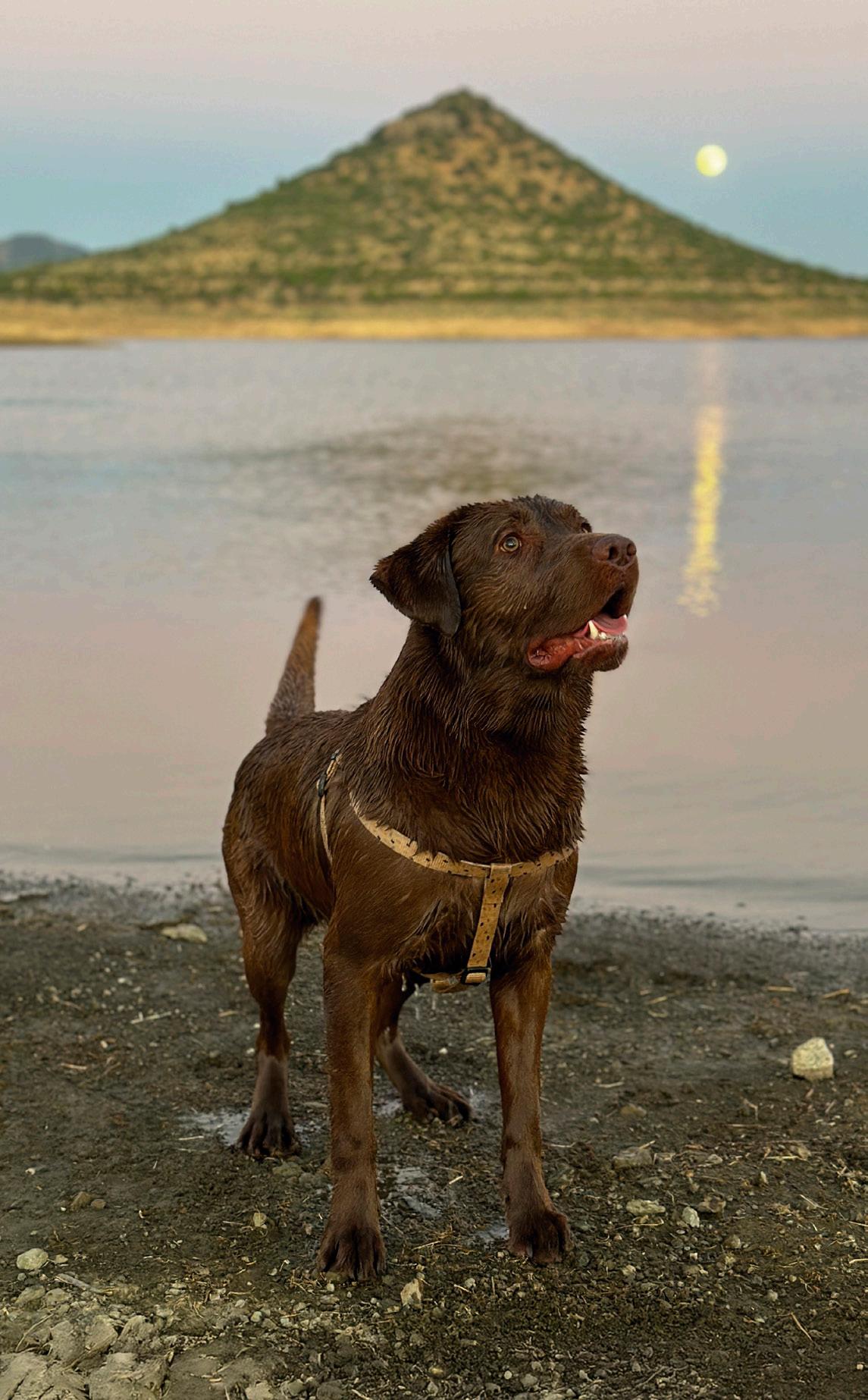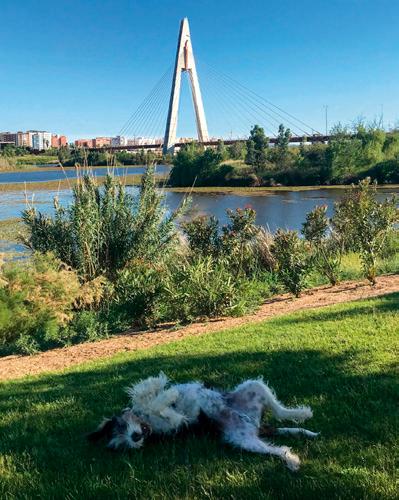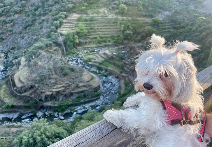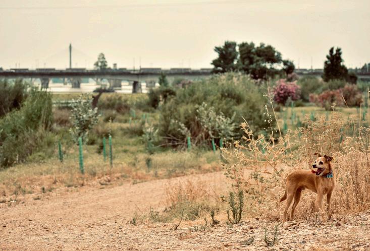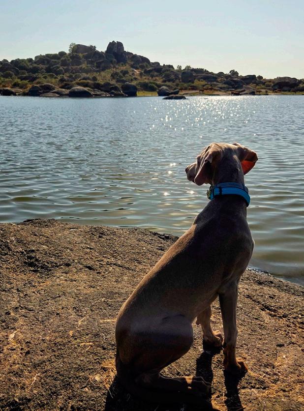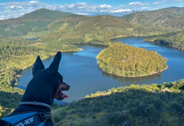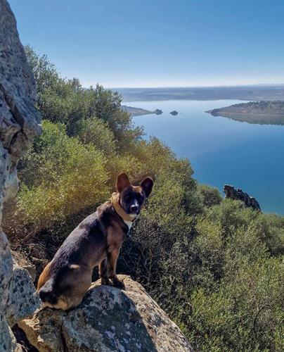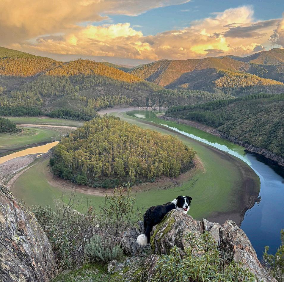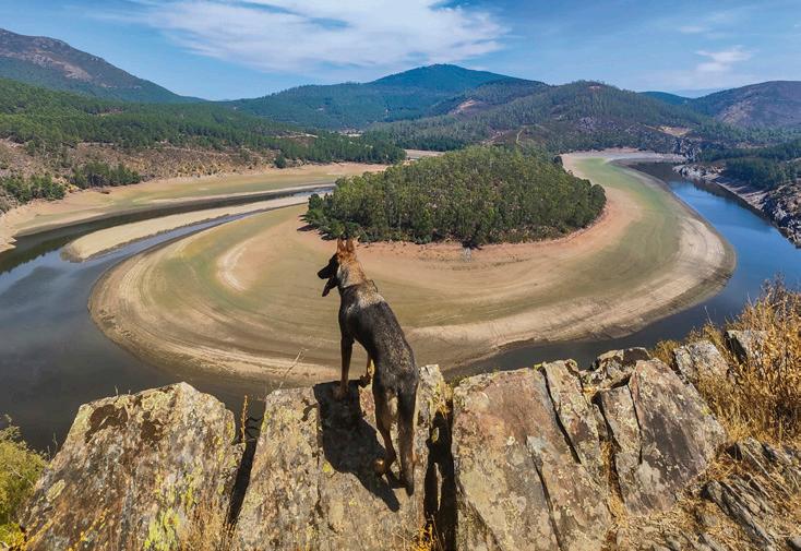 Pipper observa el río en el parque natural Tajo Internacional, cerca de Alcántara (siguiente página).