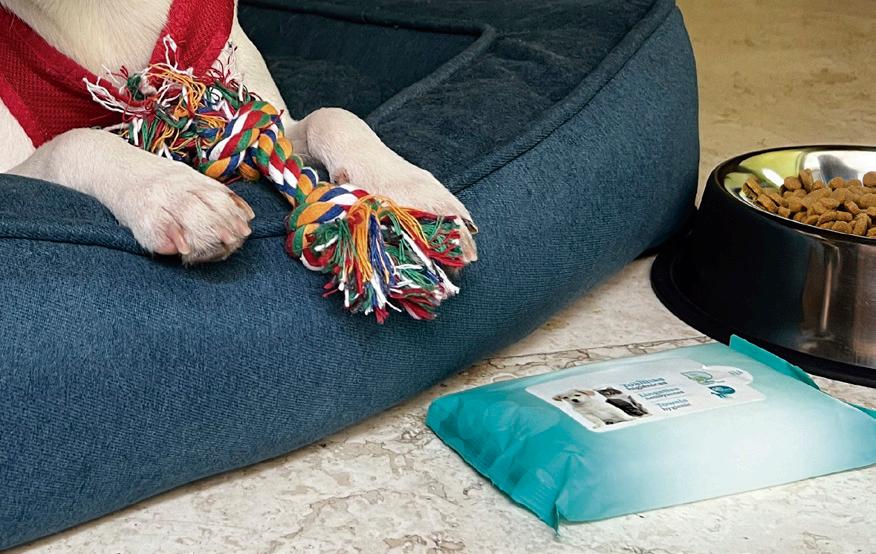 Un botiquín con productos como crema protectora de almohadillas (aplicar antes y después de las caminatas); crema solar para dar en la trufa y las orejas antes de salir de excursión al sol; si es necesario, su medicación; pinzas para quitar garrapatas; clorhexidina para desinfectar heridas, suero fisiológico para lavado ocular (necesario tras una caminata por senderos arenosos) o para limpiar heridas antes de desinfectarlas; guantes; gasas, vendas y esparadrapo; tijeras pequeñas; pinzas para extraer astillas o cualquier objeto punzante; termómetro; pomada cicatrizante y limpiador de oídos.