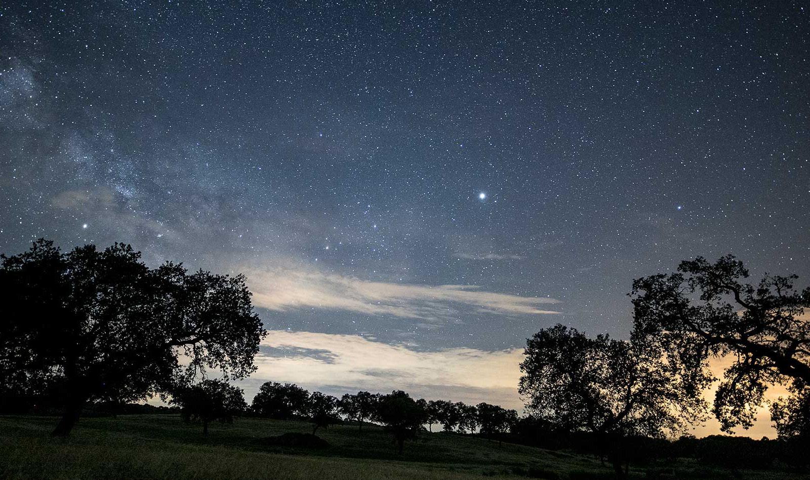 plena dehesa extremeña bajo un manto de estrellas