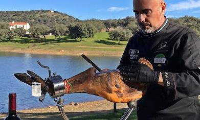 Participa en una exhibición didáctica y explicativa de corte de jamón ibérico de bellota y degústalo maridándolo con vinos de la tierra.