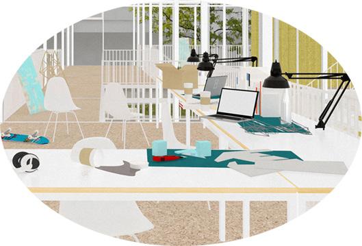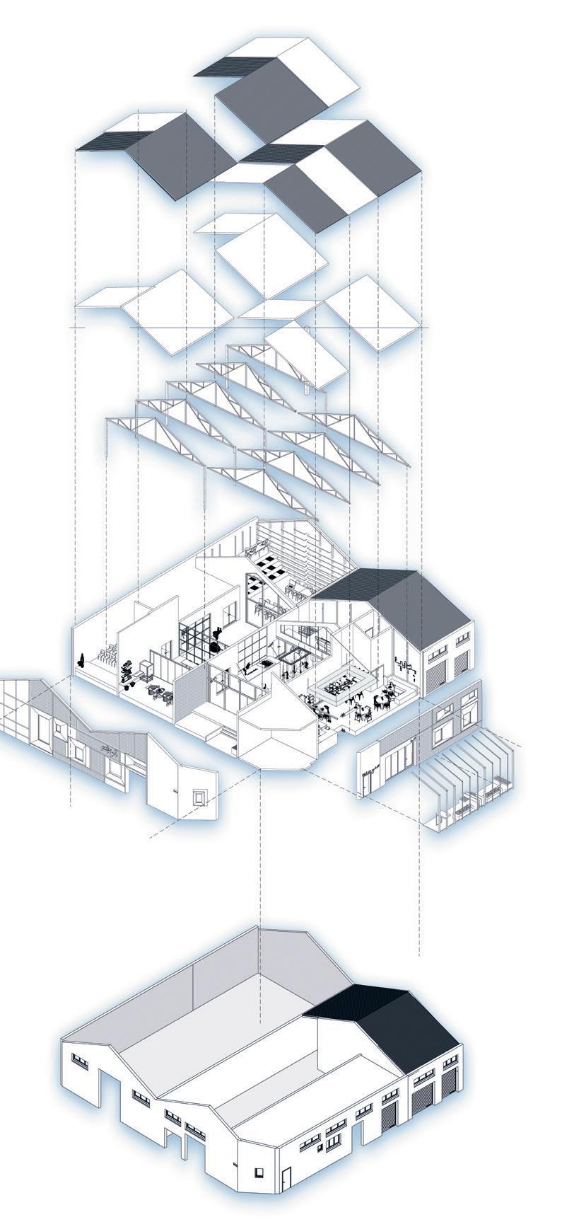 Il s’agit de créer une ambiance de chantier: superstructure métallique et des conteneurs qui permettent une reconfiguration facile des microespaces: de l’échelle des espaces de travail intimes aux configurations d’atelier à grande échelle.