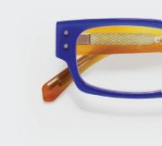 Thank you to Tevie K. for leaving us the review that inspired the name for this frame, and thank you to those who believe in wearing a fully rimmed frame low on your nose for inspiring this eccentric design. And yes, those are acetate nose pads you spy with your little eye.