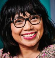ANNABELLA SARDELIS, FOUNDER OF INDIGO & SNOW, IS WEARING HALF FULL IN COLOR 76.
