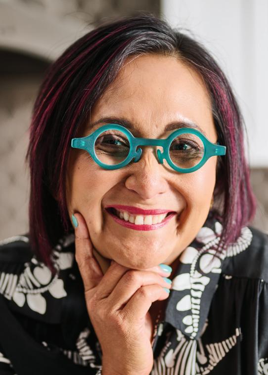 TINA REXING, FOUNDER OF T-REX COOKIES, IS WEARING WACKADOODLE IN COLOR 59.