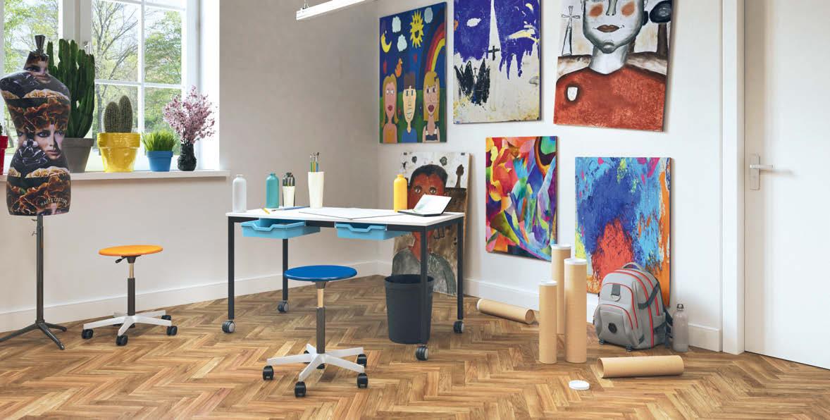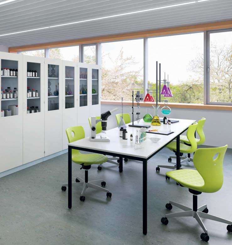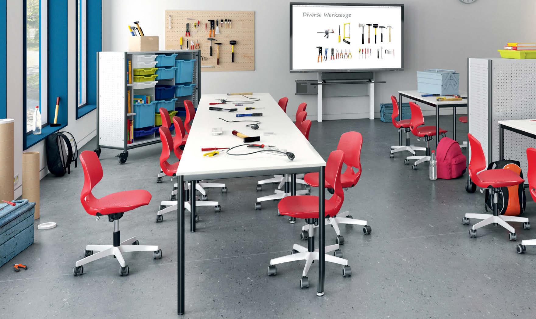 The ergonomic PantoMove-LuPo star-foot chair is the perfect complement to these workplaces. It is continuously height-adjustable and can therefore be adapted to match each student’s body size.