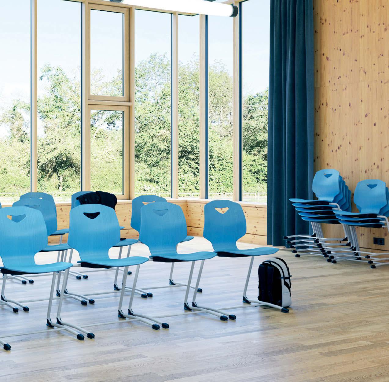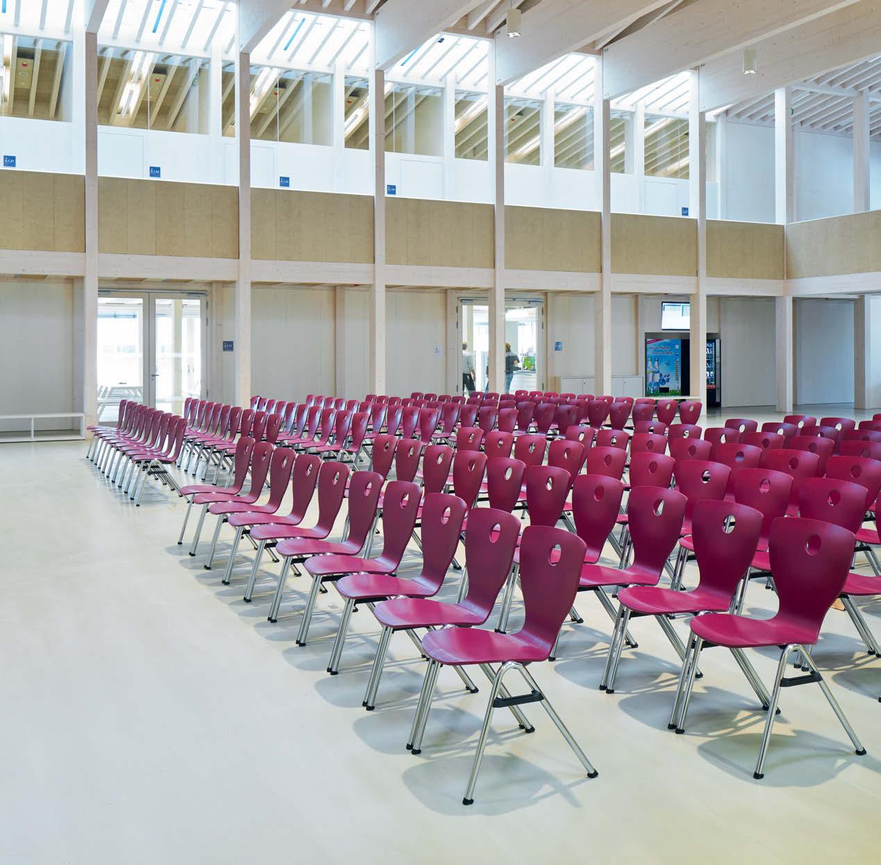 Bringing character to large rooms. The different activities that a room can be used for are determined to a large extent by its furniture. The school’s great hall, for example, must provide space for a very wide range of different activities. It must therefore be possible to reorganize it quickly and extremely flexibly. This demands furniture that offers exactly this versatility.
