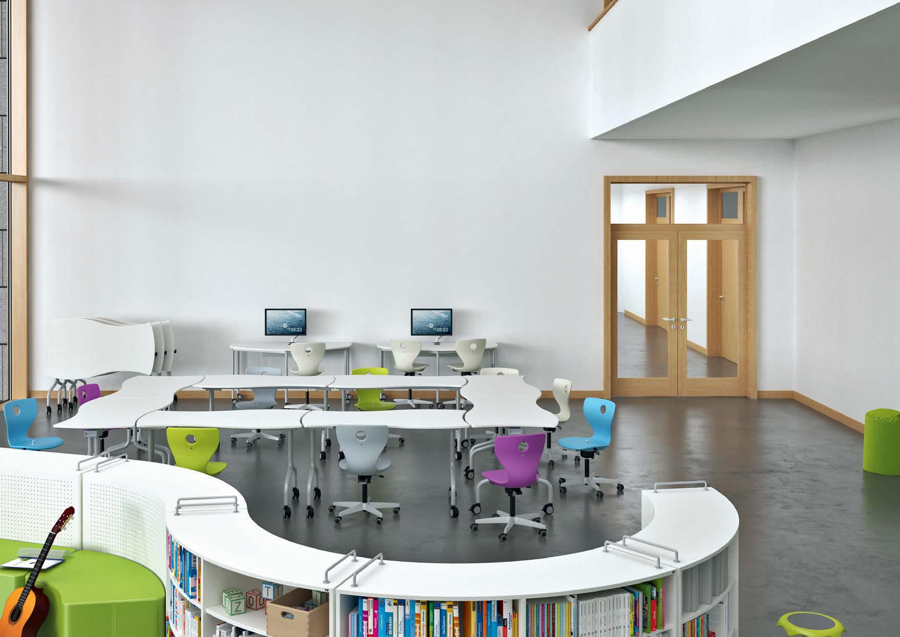 In more and more schools, young people from different years join up in group classes where they learn together. This type of multiyear learning has to cater for students with different individual requirements. Alongside the pedagogic challenge of working productively with such varied groups, it is also necessary to choose furniture that creates the best possible working conditions for everyone – both tall and short students alike.
