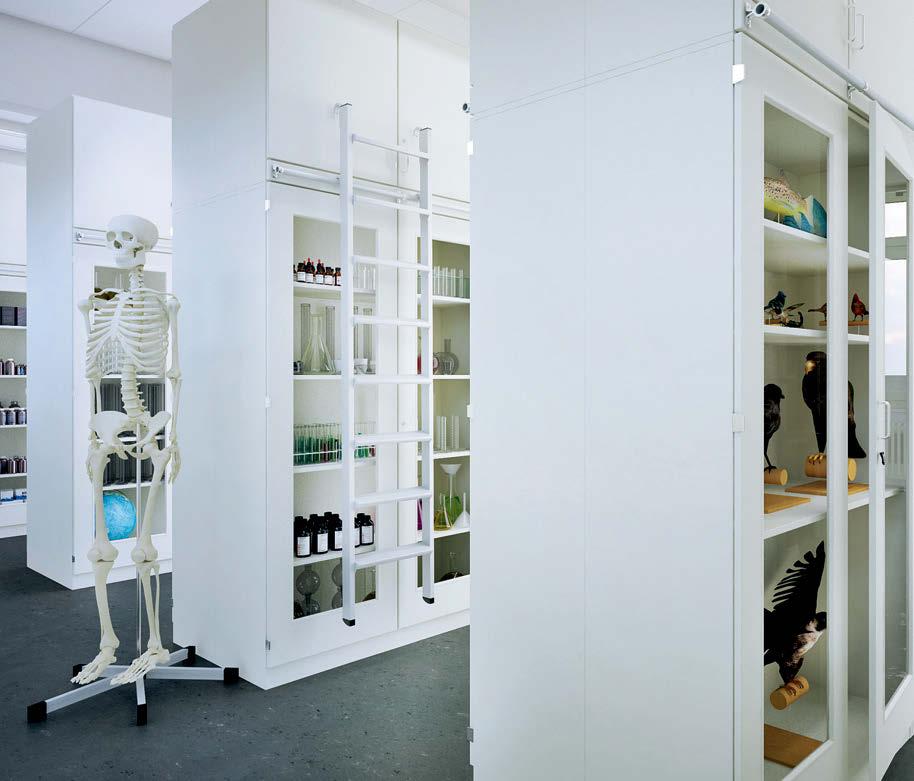 Serie 800 Low cabinets and shelves with plastic Gratnells boxes