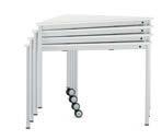 Folding tables and stackable tables also make it possible to transform a large room into a working or living area. The tables can be simply folded up and stacked to save space. Integrated stack protection ensures that the table tops are not damaged by this. The folded tables are transported using a stacking cart.