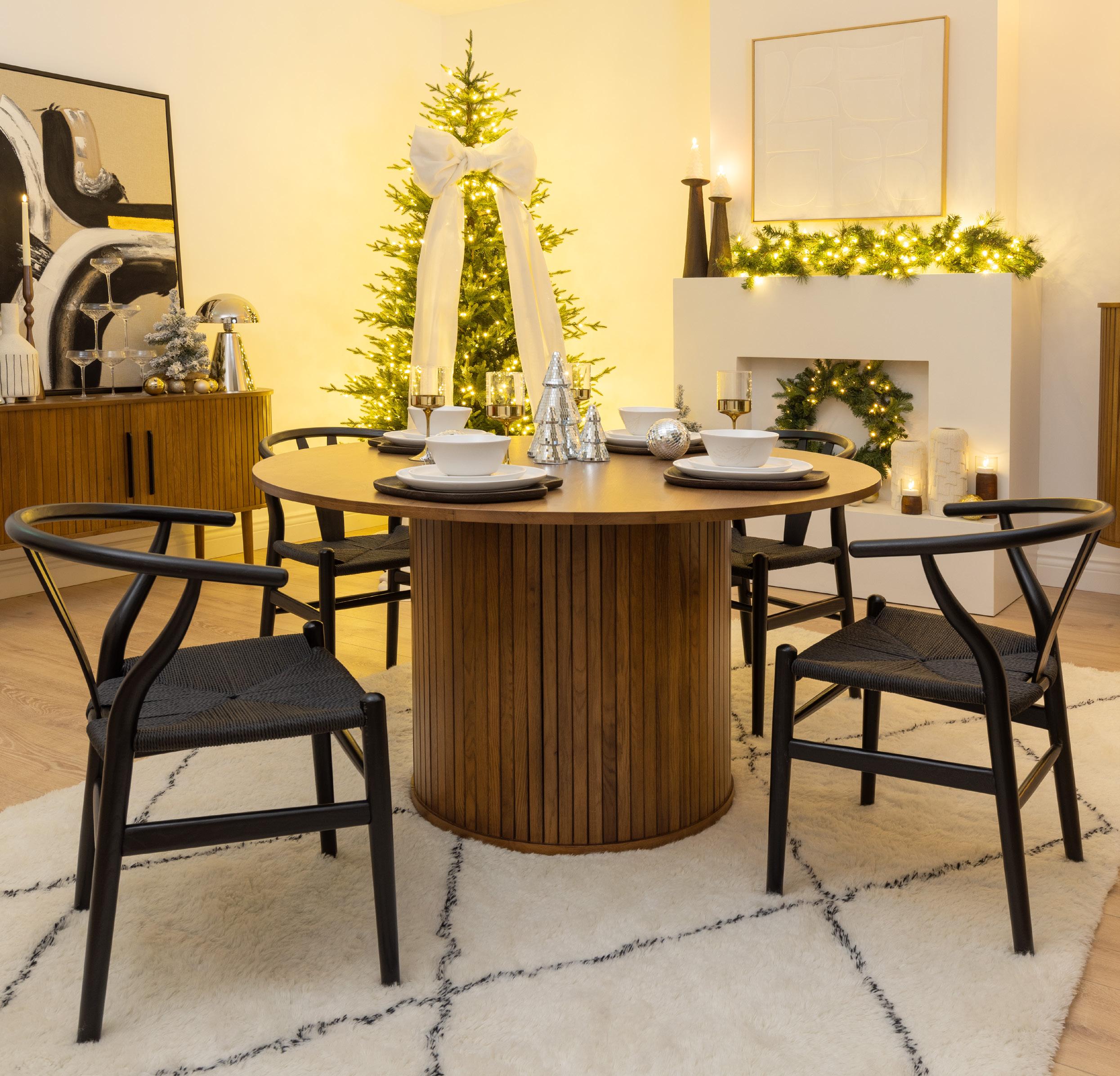 Lyra 1.3m Round Dining Table £899 £549 | 1.9m Rectangle Dining Table £1099 £649 Slide Door Tall Sideboard £899 £449
