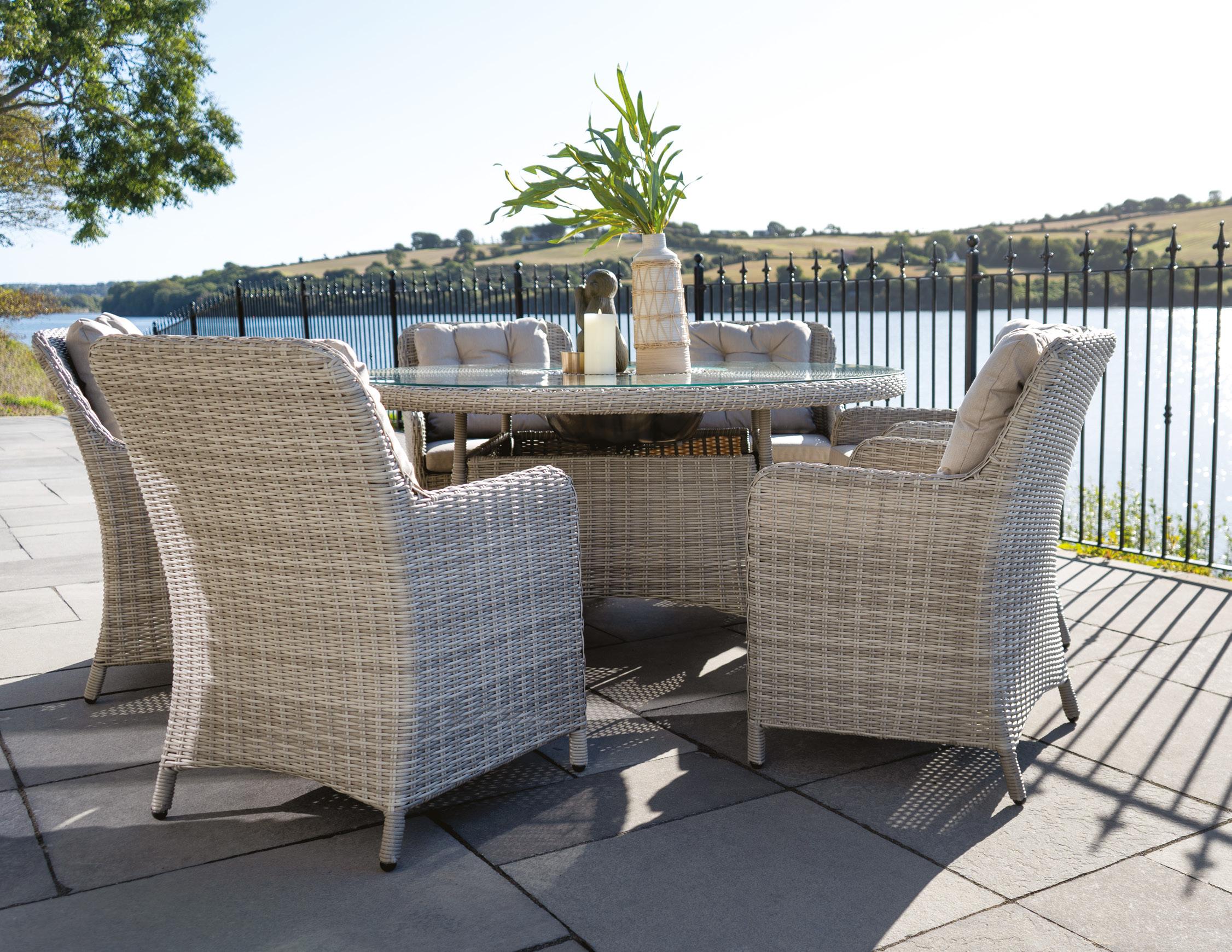 Acacia wood, an adaptable colour palette and intricate accents – the divine Diablo is all-encompassing style defined. Welcoming arms catch the eyes, while cosy cushions invite you to recline and unwind. With this complete set, it’s always the right occasion for an open invitation.