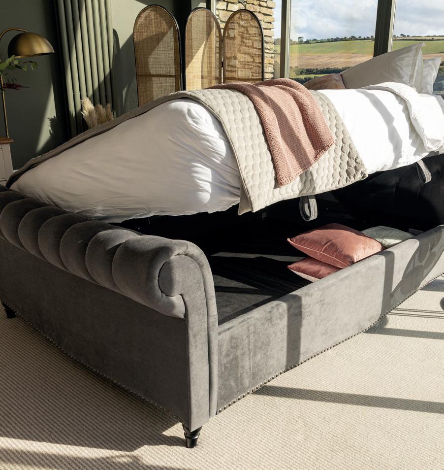 20 EZ Living Interiors WINTER SALE 2023 CHARLOTTE 4’6” Ottoman Bedframe From Only £949 NEW CHARLOTTE available in charcoal or peacock 4’6” Ottoman Bedframe Now £949 5’ Ottoman Bedframe Now £999 | 6’ Ottoman Bedframe Now £1199