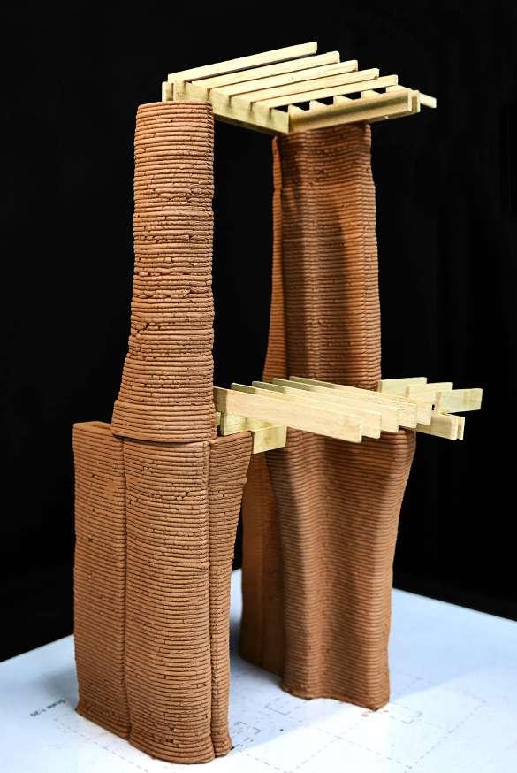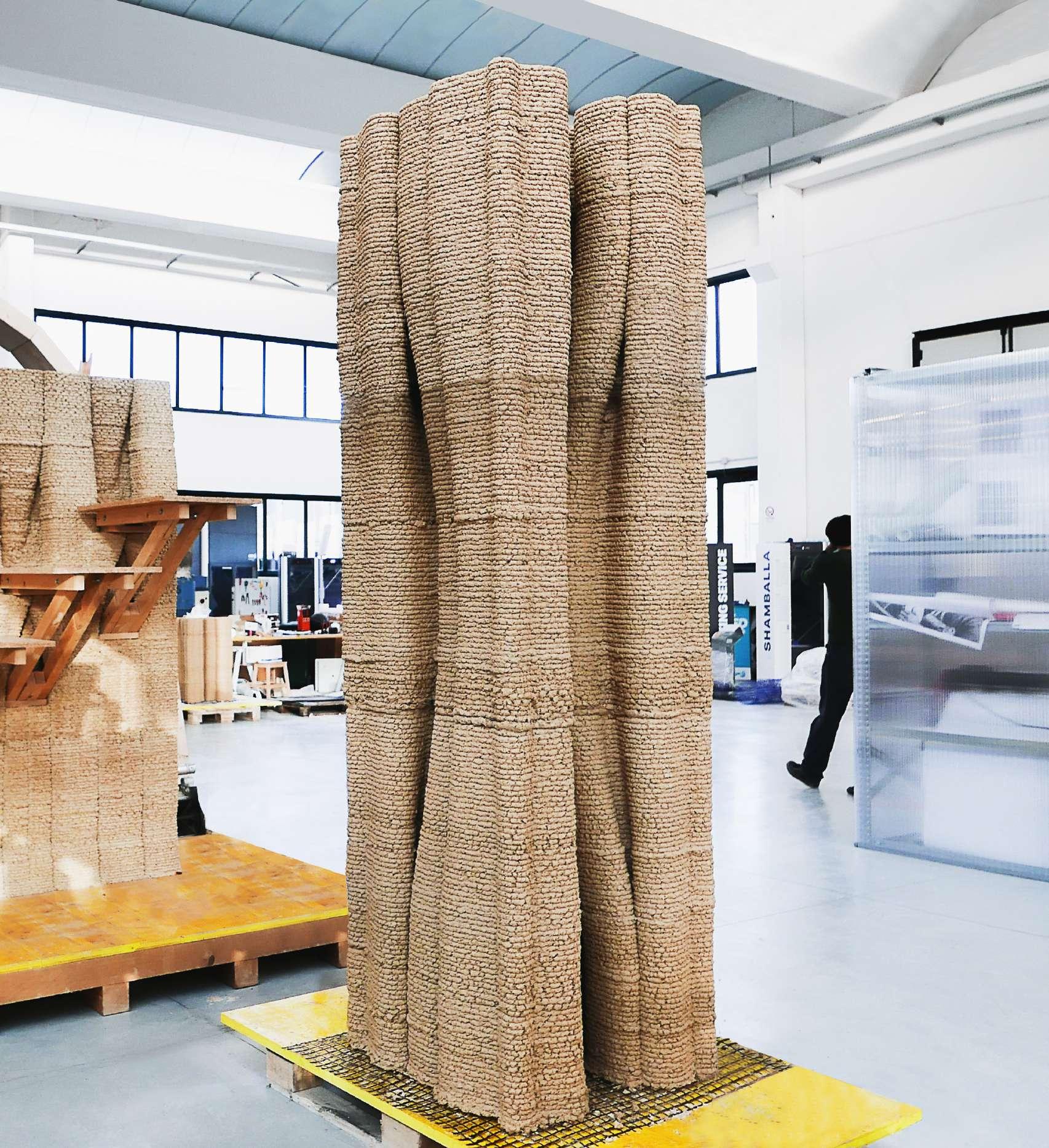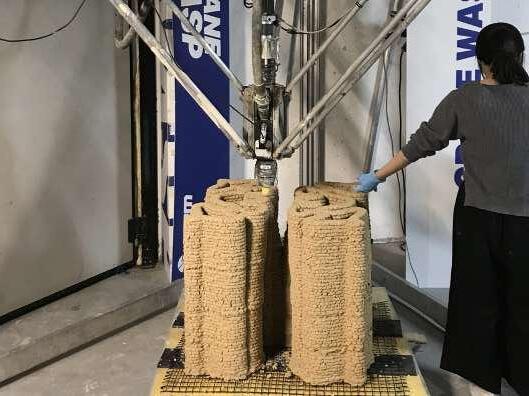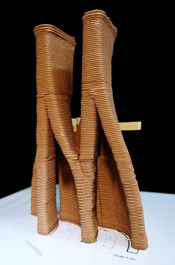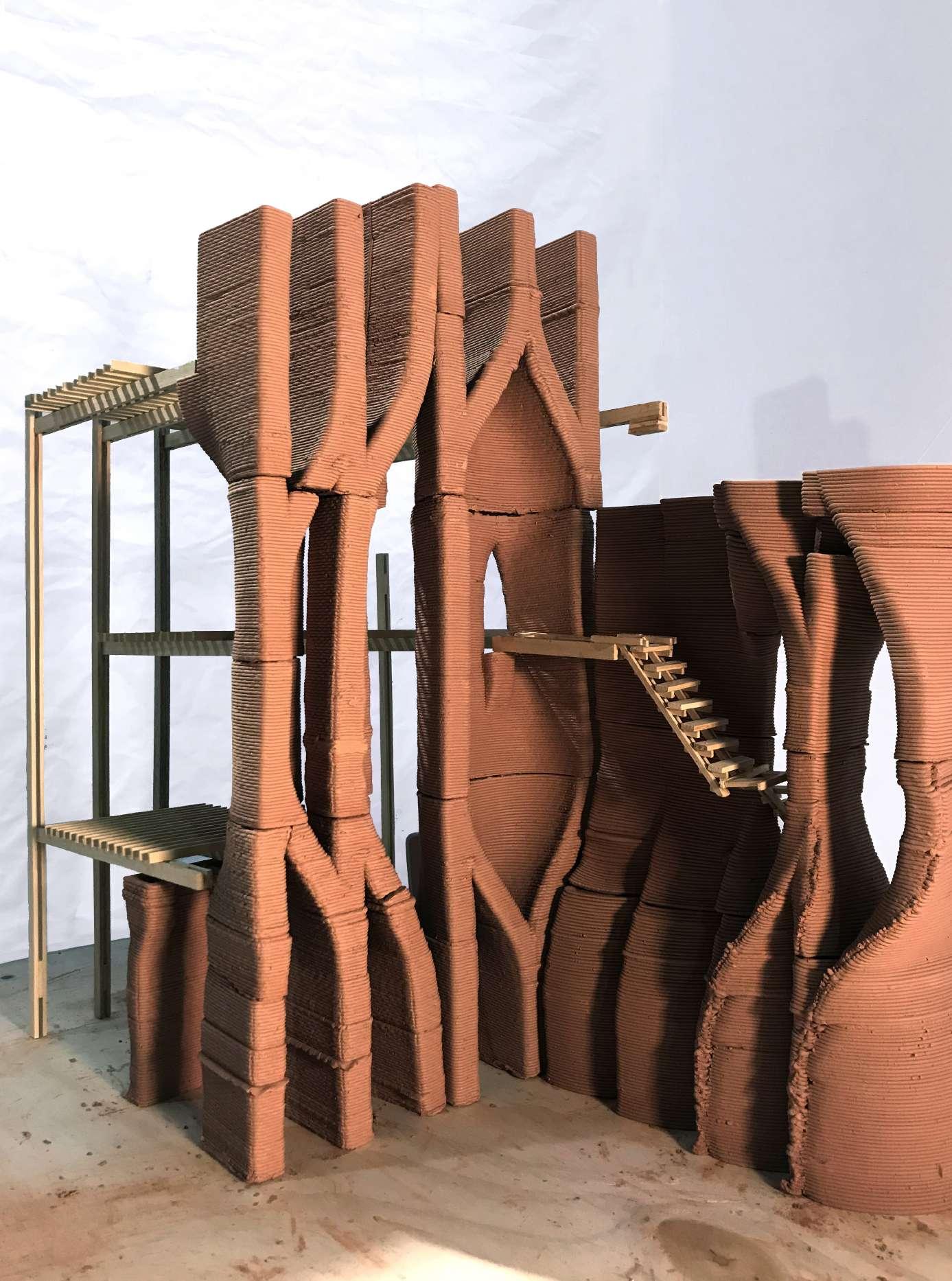 Delta WASP 3MT ( delta 3d earth printer) is used for printing the column which is 3 m high. The materials are mixtures of a clay,rice husk and lime stone. The printing and assembling is done in 5 days.