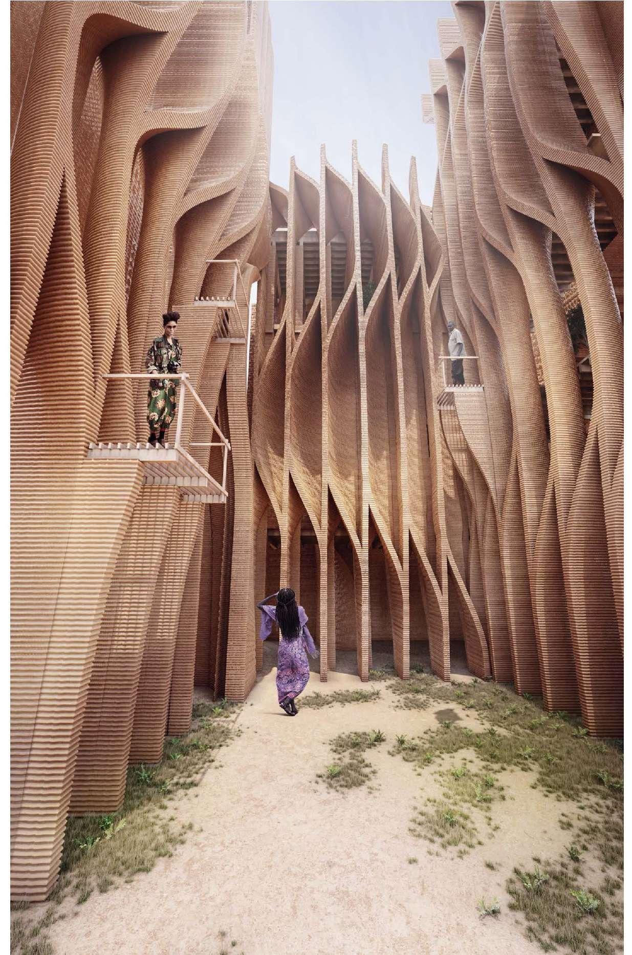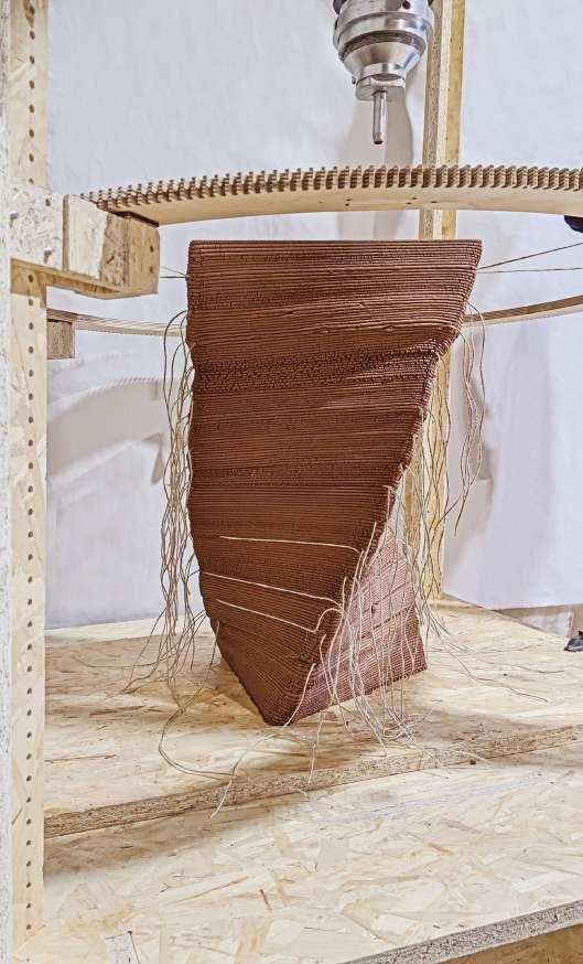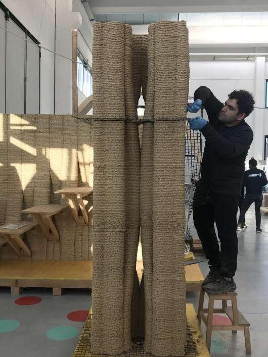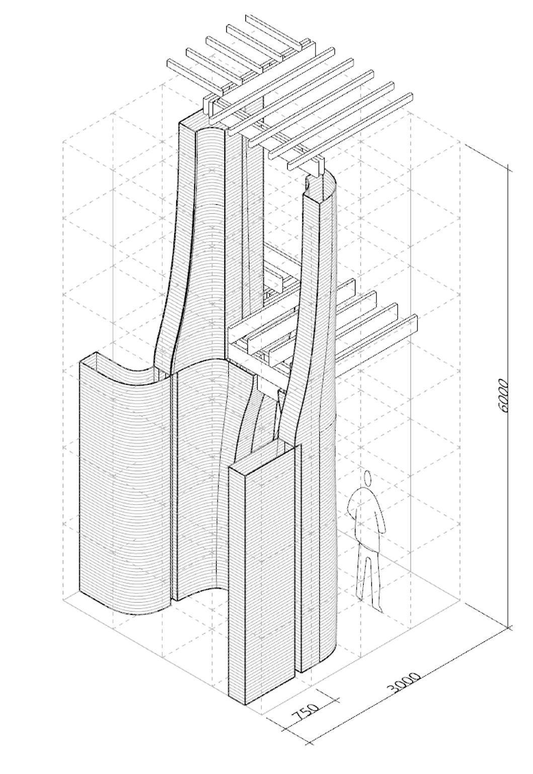 Delta WASP 3MT ( delta 3d earth printer) is used for printing the column which is 3 m high. The materials are mixtures of a clay,rice husk and lime stone. The printing and assembling is done in 5 days.