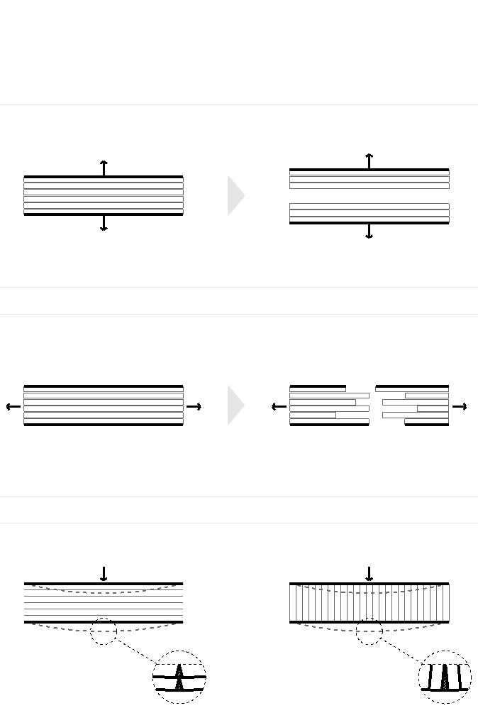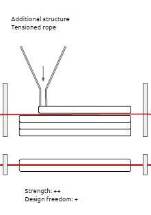 1. While printing, pre-tentioned ropes hold unstable printed part. Ropes connect one part to other part so they are pulling each other. When placing rope and printing top of that, ropes among printed layers have tension but when printed layers are dired, ropes lose tension because of shrinkage.