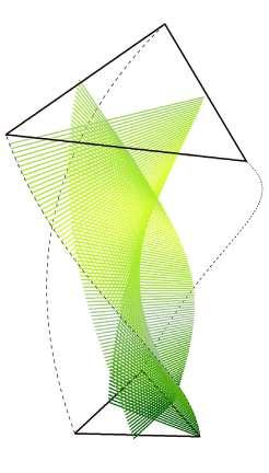 The triangular surface shows the largest overhang degree. The rectangular one has 32-degree overhang as maximum. The curved surface cannot keep rope tention so it collapses in 32 degree overhang. This test demonstrates that this pre-tentioned rope rinforcement works on a rulled surface. Also, intersected ropes make more stability.