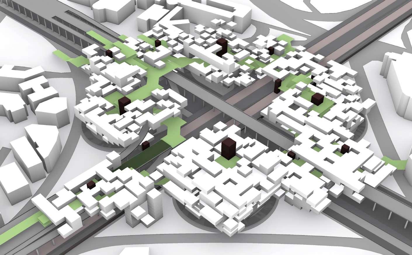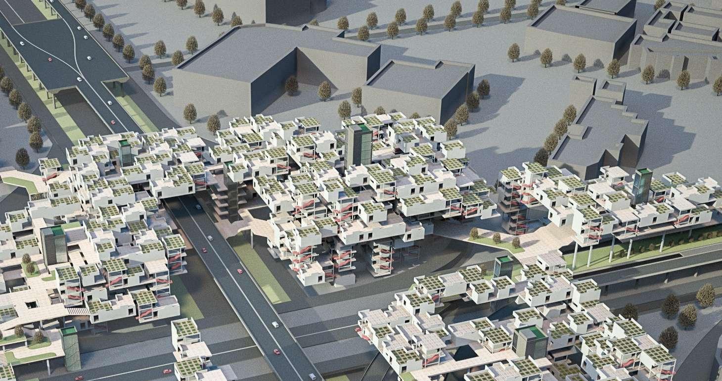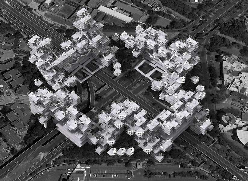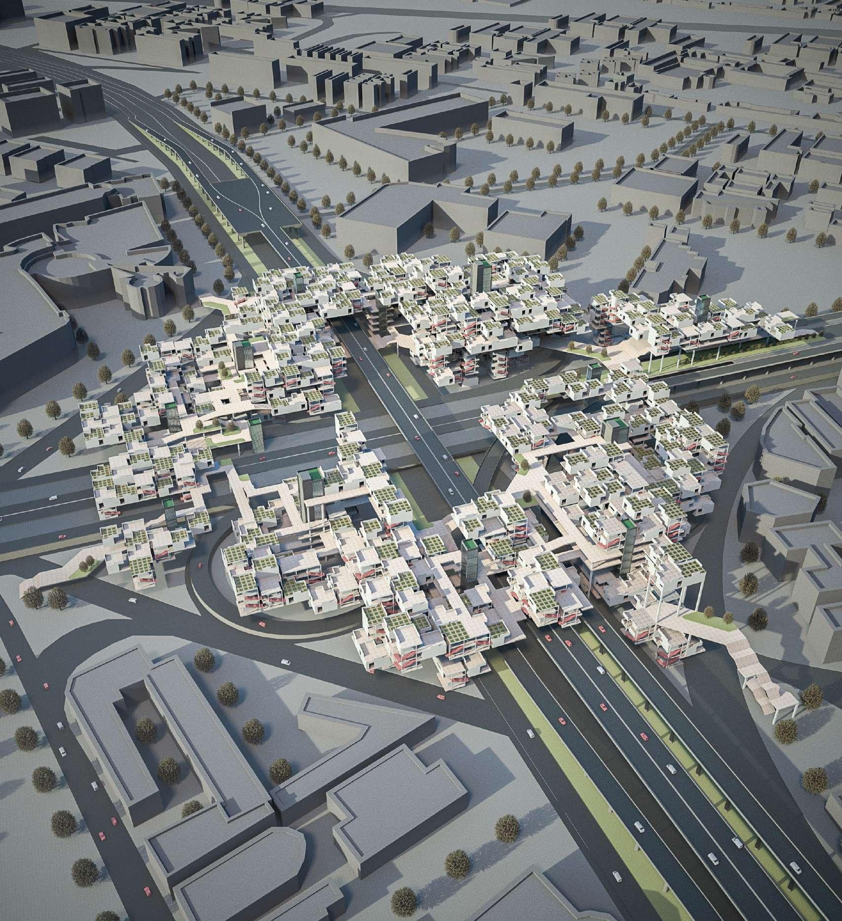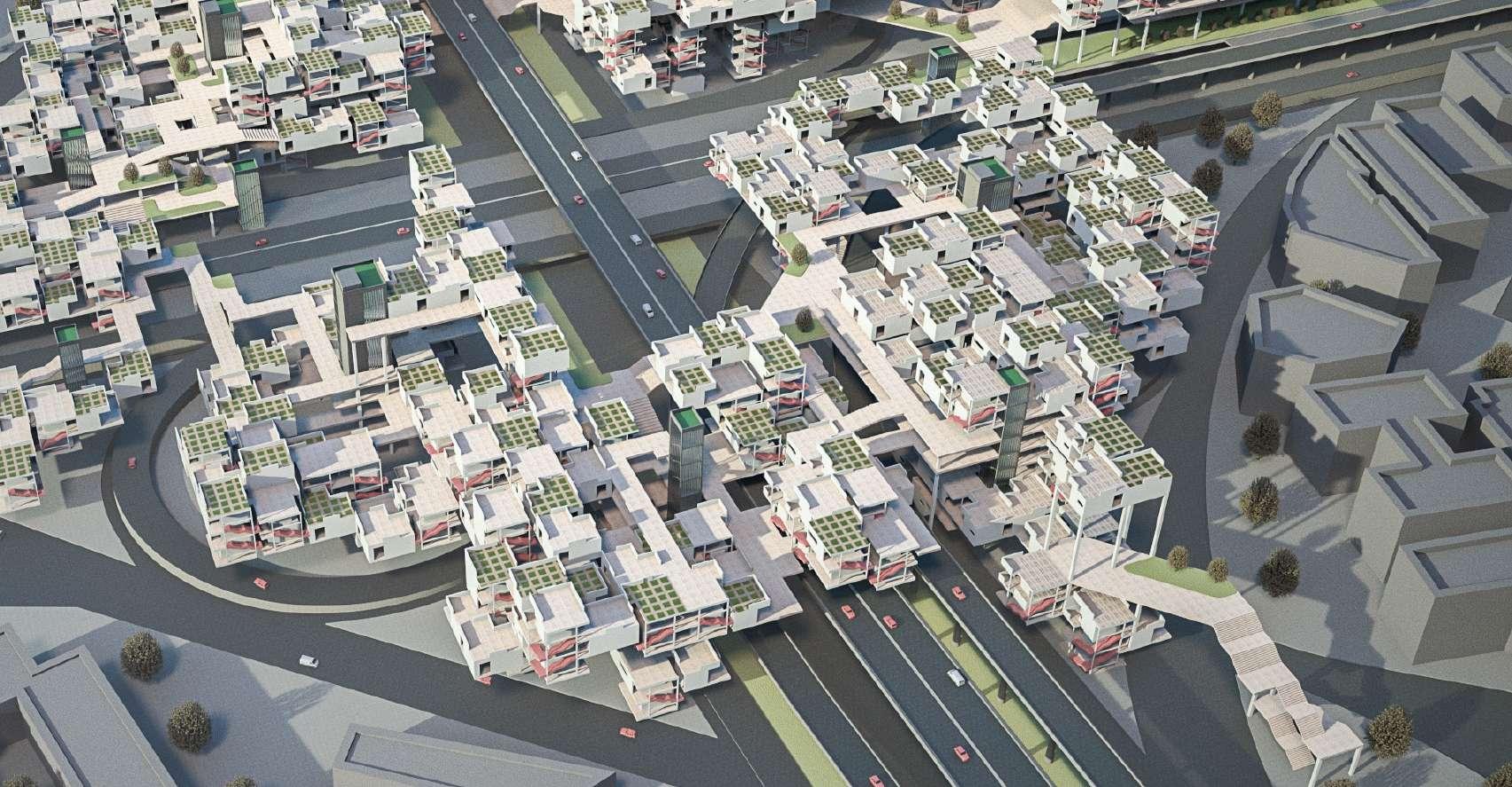 실뮬레이션으로 만들어진 큐브들은 10개의 모듈로 대체된다. 각 모듈화의 공간은 주거, 상업, 등 다양한 용도로 이용된다. 모듈들은 미리 공장 에서 조립된 후 현장에서 조립될 수 있다. 실뮬레이션으로 만들어진 구조는 마스터플랜처럼 모듈들의 조립의 방향을 제시한다. 처음에는 일부 분만 건설되고 추후 수요가 증가하면 실뮬레이션된 구조에 따라 모듈들을 추가하면서 공간을 확장할 수 있다. 각 모듈의 노출된 지붕에는 조경을 심어 삭막한 고가도로의 풍경을 좀 더 자연 친화적으로 바꿀 수 있다. 입체적인 공중 정원은 다양한 레벨로 형성된 새로운 공간과 어우러져 좀 더 흥미로운 도시 경관을 연출 한다.