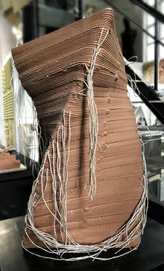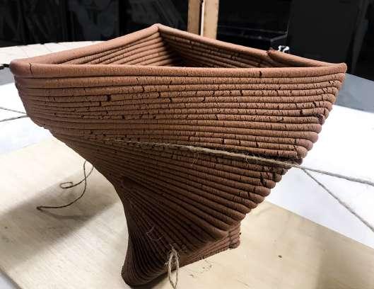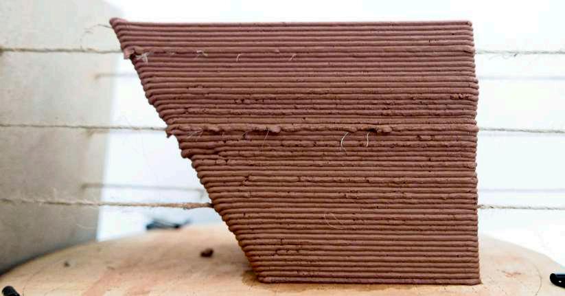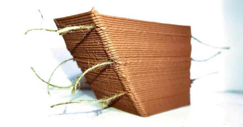 Second goal is achieving more design freedom. 3D printing has a limited angle of overhangs. Compared to plastic 3d printing, earth printing has less overhang. It is because the earth printing is very weak to tensile force when it is wet. If geometry has more overhang than 30 degrees, it would be bent and collapsed. The fiber reinforcement makes 3d earth printings possible to have more overhang degrees than 30. This means that 3d earth printing will have more various designs because of less limitation.