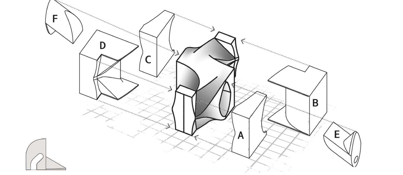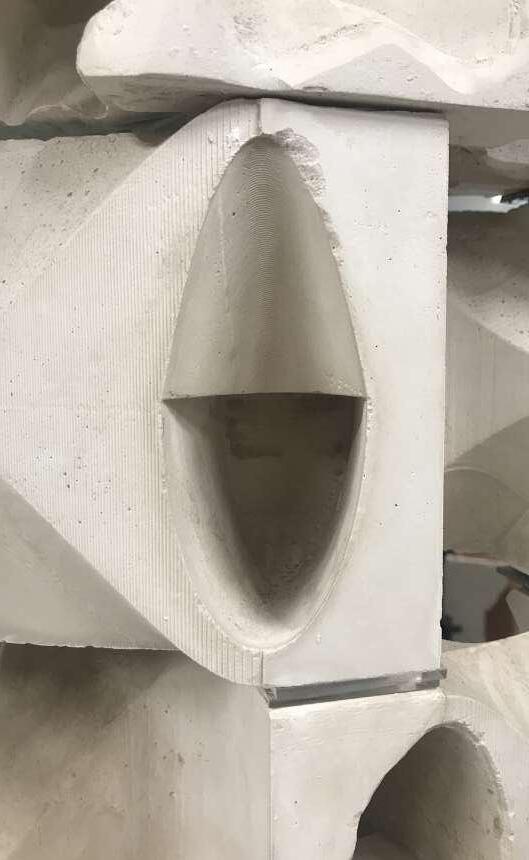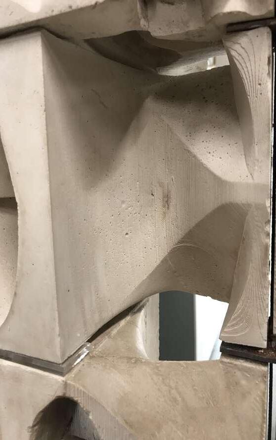 This project shows the possibility to produce complex forms by digital fabrication. In this case, 3d printing is used for making mold. 3d printing takes a long time for printing large objects but it is good for making complex forms easily. So casting by 3d printed mold gives advantage of producing complex bricks in a short time. These 6 bricks become a part of a digital fabricated wall which is a collection of 18 groups work.