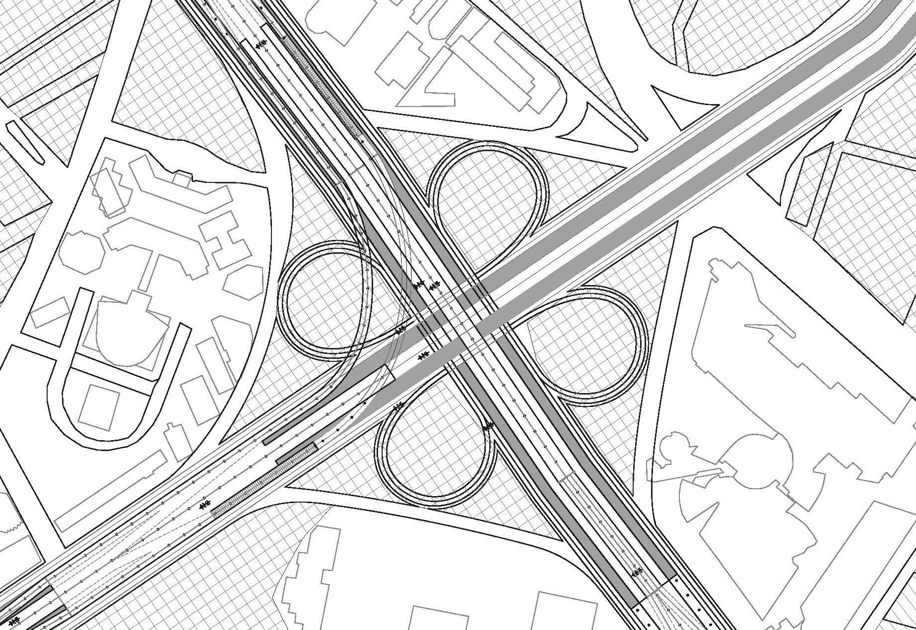 사이트는 전체 “Segundo Piso” 중 남쪽에 위치한 부분이다. 지상과 연결되는 네 개의 경사도로 가 고가도로와 연결되어 있다. 이 지역은 경사도로와 고가도로, 지하차도가 교차하면서 네 지역 이 단절되어 있다. 원형 경사도로 사이에 도시의 유휴지가 만들어졌다. 이 유휴지를 활용하면서 단절된 지역을 입체적으로 연결하는 것이 이 프로젝트의 주된 목표이다. 또한 제안되는 새로운 도시의 레벨은 고가도로의 교통기능과 통합되어 “Segundo Piso”를 단순히 교통 시설이 아닌 새 로운 도시 구조로 변모 시킨다.