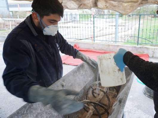 Material preparation | The mixture (rice husk, limestone and clay) is mixed with water 1:1 ratio by the ribbon blender mixer machine. After that material was provided to the printer by the pump mill. Delta Wasp 3MT can print 2m high. The column is divided into 3 parts and each part has 1m height. After 3 parts are printed and dried, they are assembled. Printing time | The printing time is about 20 hours but including drying time before assembling, total production time would be 28 hours.