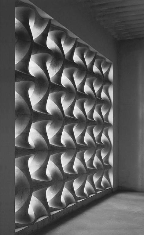 After phase 1 of this seminar (trying to use 3 different digital fabrication ways for making sphere), in phase 2, each group (total 18 groups) chose one of 3 topics (structure performance, light filtration, privacy), digital fabrication technology and material density (30%, 40%, 50%, 60%, 70%,80%) for producing 6 bricks. Total 108 bricks were fabricated for one wall with 6 parts of 3 different concepts. This project has “light filtration” concept and is fabricated by 3d printing and casting technique. Material density is 40 %.