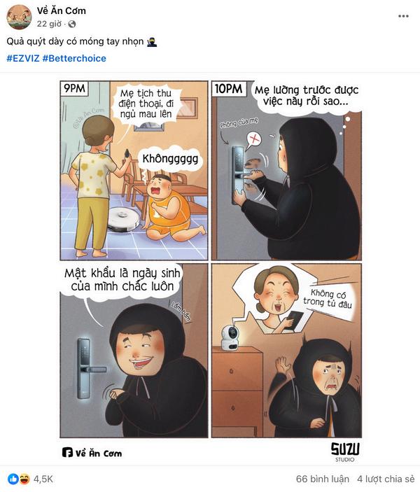 “Về ăn cơm" là trang comic quen thuộc với những câu chuyện nho nhỏ gần gũi với đời sống hằng ngày, thu hút gần 600K người theo dõi.