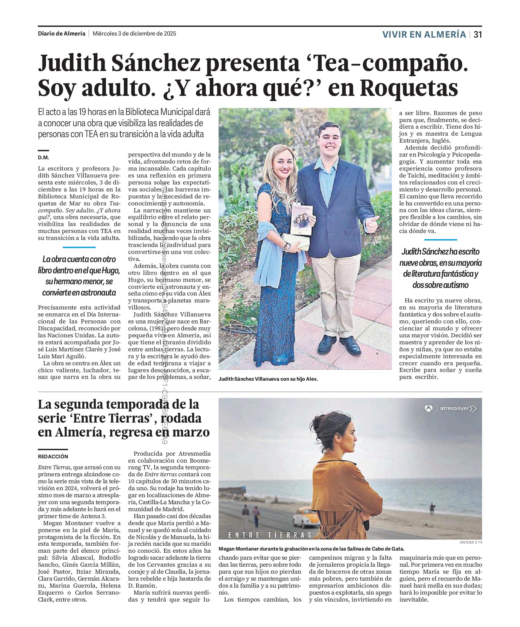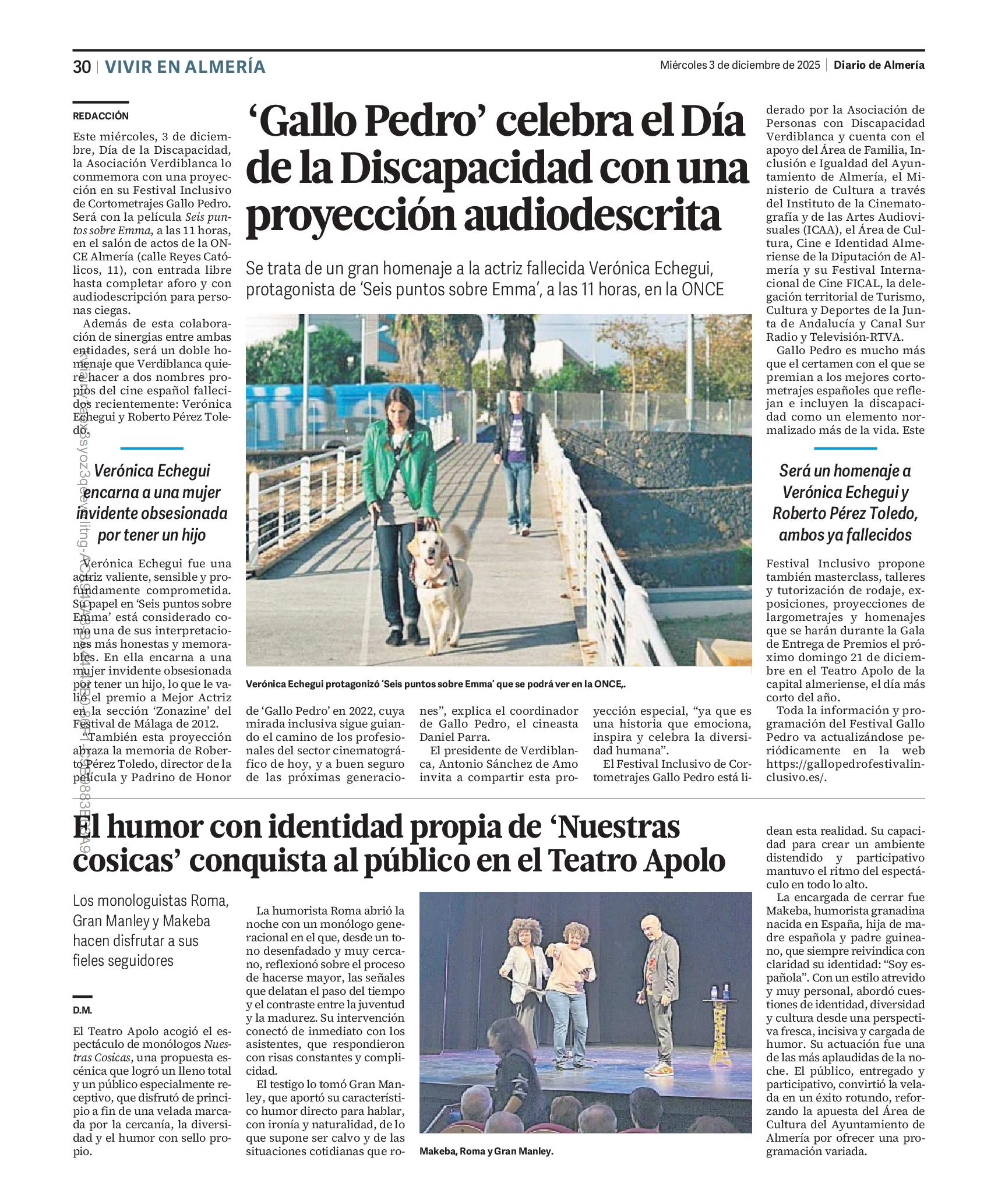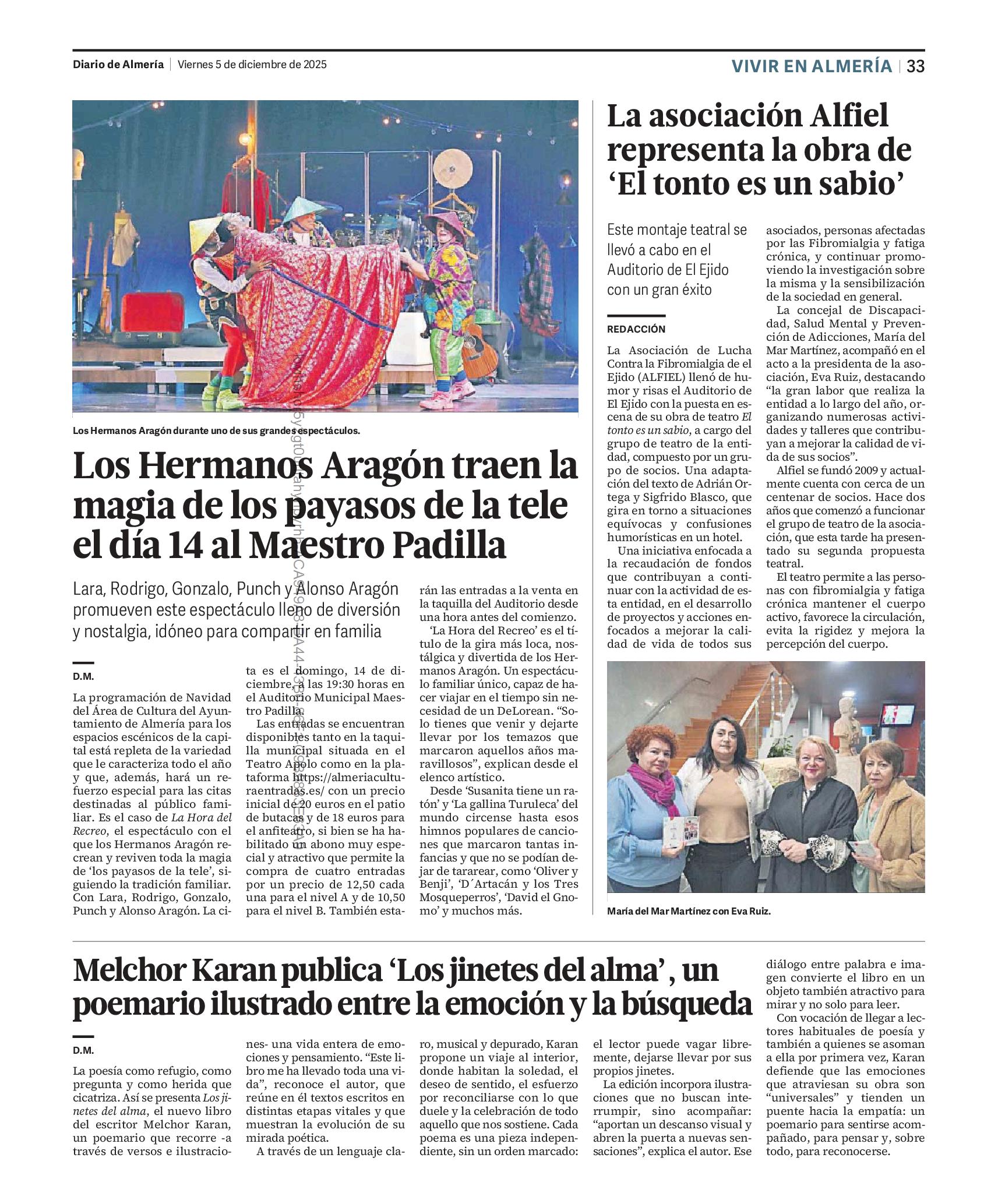 Alfredo por su casa” de Interalmería Televisión dedicará una emisión especial a la discapacidad en Almería. A las 18:00 h en el Espacio Alma. Dentro de la programación del Mes de la Discapacidad, se volverá a disfrutar de “Ritmos que unen”, con sesiones infantiles y adultas donde la música y el movimiento sirven como lenguajes universales para la cooperación y la convivencia. Será el 5 de diciembre a las 11 horas.