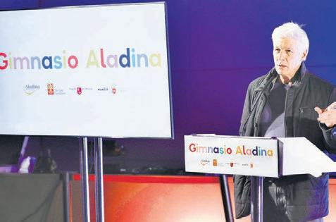 no-infantil, donde ha dejado su firma, en su nombre y en el de su esposa e hijos, como él mismo ha afirmado, en el primer bloque del gimnasio en el que la Fundación Aladina prevé invertir, con fondos propios, un millón de euros.