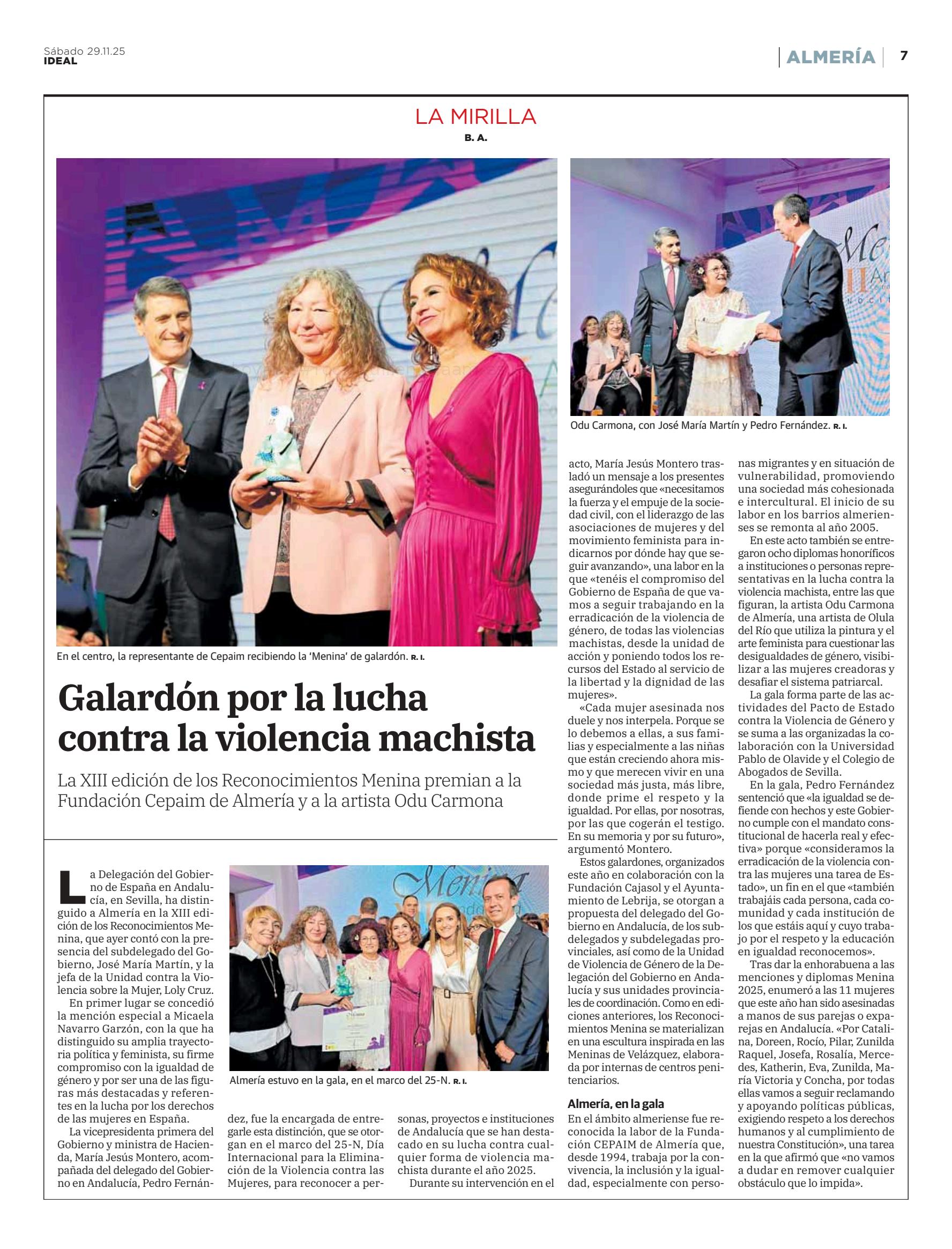 Constitución Española”. Ha subrayado que “se trata un artículo que gracias a un amplio consenso político y social ha sido transformado para reconocer la dignidad inherente de las personas con discapacidad y garantizar su autonomía, su participación social y su igualdad real”. Martín ha querido poner en valor “el gran trabajo de la FAAM tanto con las personas con discapacidad en Almería como por sus familias”. La delegada del Gobierno, Aránzazu Martín, ha señalado que se trata de una jornada “en la que volvemos a reivindicar que una sociedad en Igualdad es posible, una sociedad inclusiva, en la que toda la población tenga los mismos derechos”. Martín ha recordando el “importante esfuerzo del Gobierno andaluz en materia de Discapacidad, y hay numerosos ejemplos que lo avalan”. “La Junta va a destinar más de 1,1 millonesde euros para impulsar el empleo de personas con discapacidad en