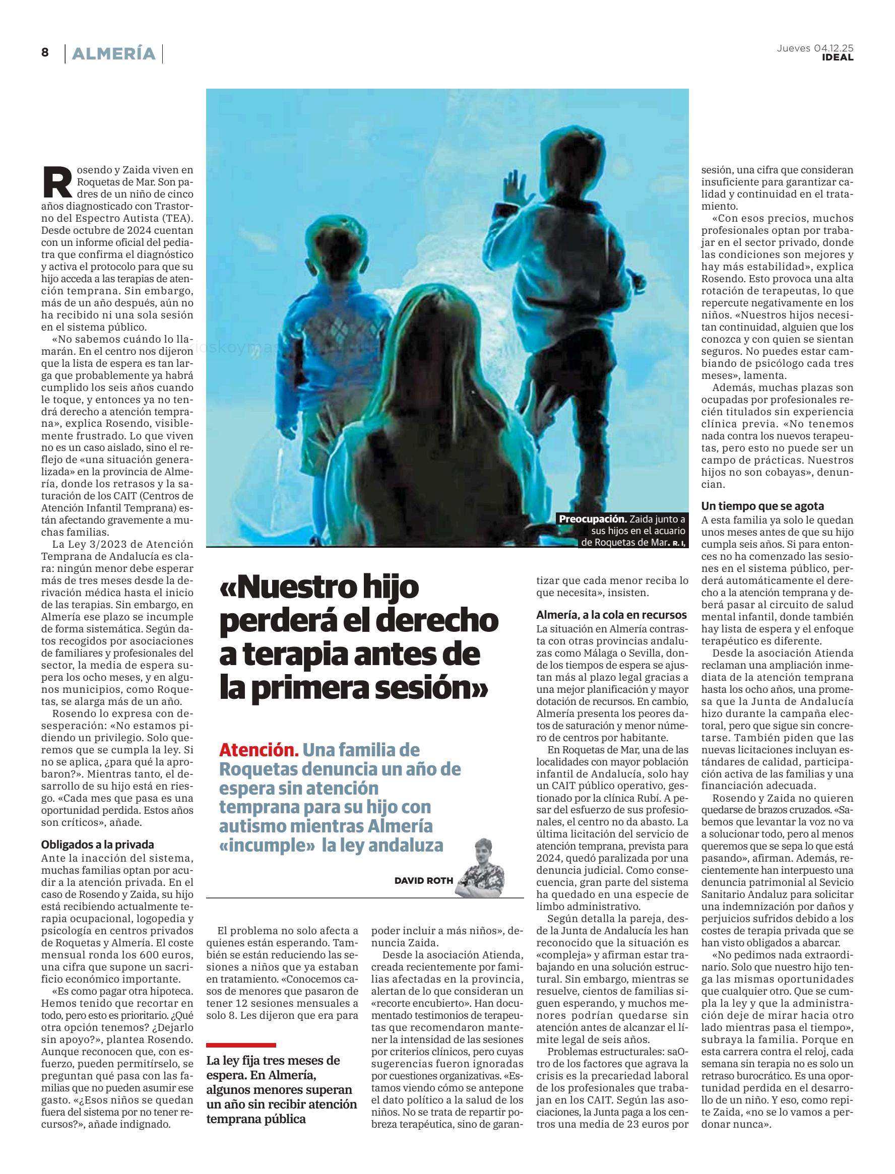 que se lleva a cabo en Aspapros, centro referente en la provincia de Almería que además supone un respiro para muchas familias, y que “cuida, dignifica y da un trato muy humano a todos sus usuarios”.
