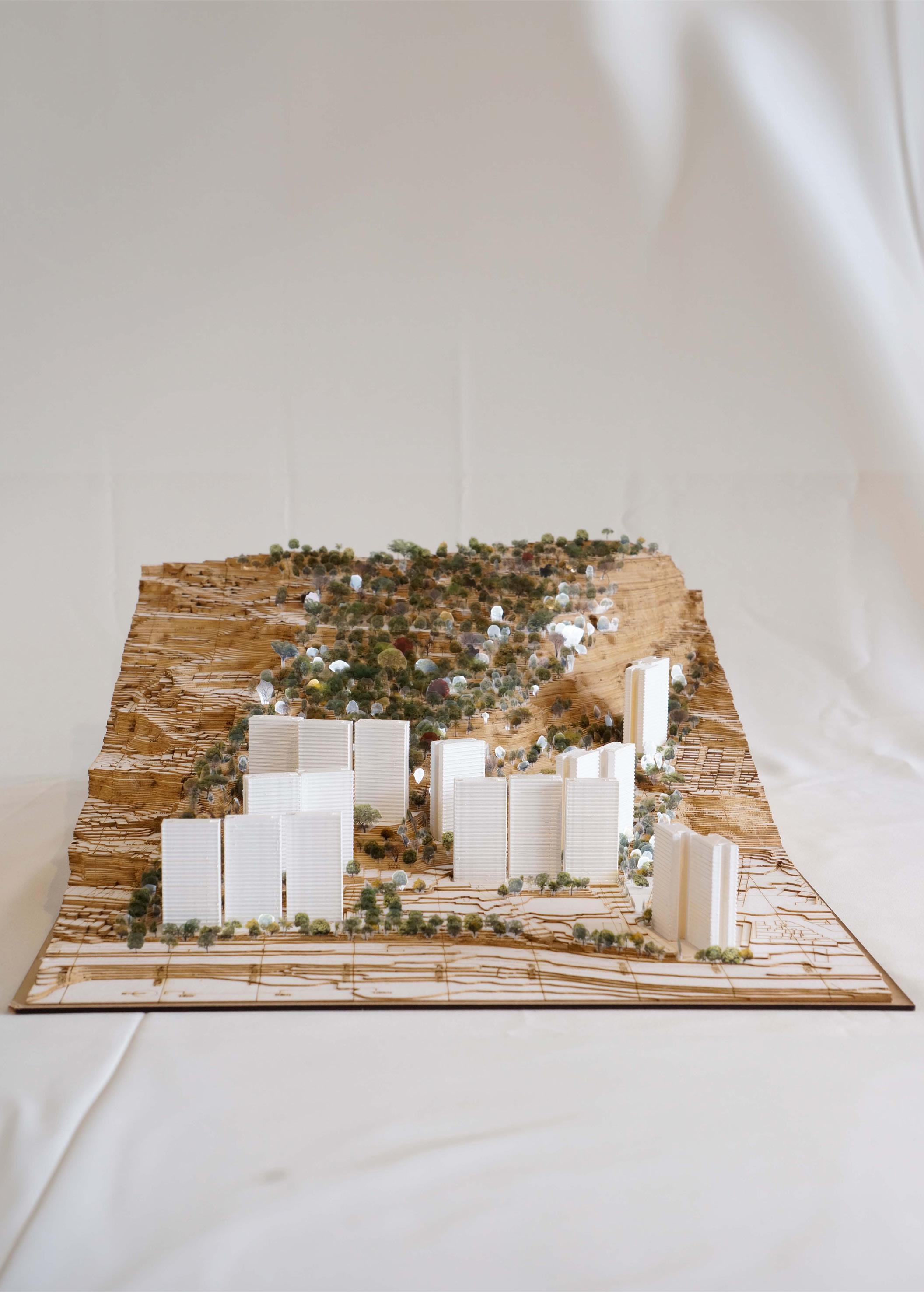Multiple iterations of the general plan and the location of the towers were conducted with precise studies of the terraces, the steep zones and landfills to properly connect the entire project with low, cost-effective engineering interventions to construct a feasible project. Consequently, Servitá uses just the 8.2% (7.152 m2) of the total Developable Area (86.781 m2) and the 1.5% of the Gross Area (450.511 m2) of the lot.