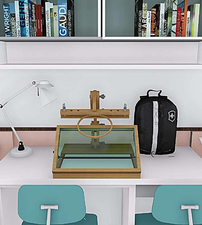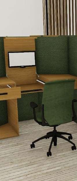 Estemoduloparaoficinaesdiseñadocomo espaciódetrabajode2usuarios,conunsistema de desinfecciónpormediodeluzultravioleta,una correctaubicacióndelapantalladetrabajo,un espacioparadesinfectarloselementospersonales yundiseñoconesquinasrectasparauna circulaciónsincontactodirectoentreusuarios