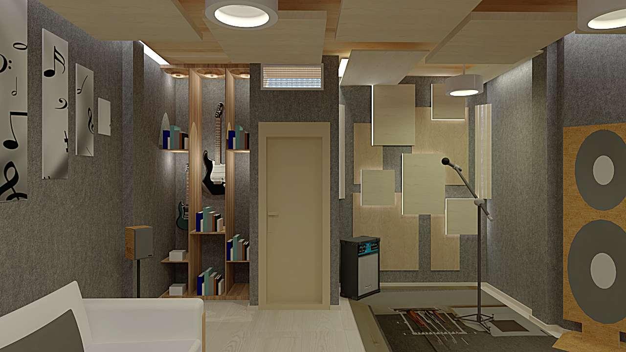 Lapropuestaparaesteestudiodemúsicaconstaen trabajarconunespaciopequeñosinusar separaciones,soloelmanejocorrectodeelementos paracaptarcorrectamenteelsonidoygenerarun espaciousandoaislantesacústicos.