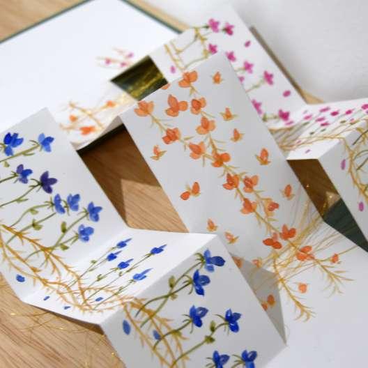 Série Rosas flag book, desenho, aquarela e recorte 50,5 x 25 cm (fechado) 2022