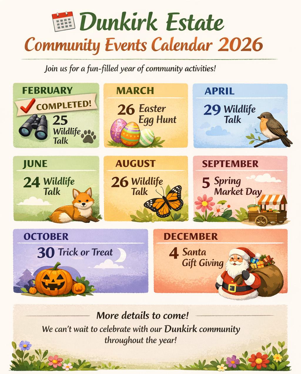 We are raising funds for a tracker for our crowned eagles, which, when combined with the data from the Zimbali pair, will make a huge contribution to the research on these beautiful and endangered birds. The calendar of Dunkirk events for the year has been set, so keep an eye out and save those dates!