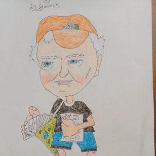 Two years in hospital, 36 operations later, and learning how to walk and talk all over again, Liz is here to tell the story with the most beautiful smile and wonderful attitude to life. Liz is the epitome of a positive attitude, not only did she have to relearn basic activities (she lost over 40 years of memory and development), but she also learned to draw, and what beautiful, joyful drawings she creates. You will see the cards in the library, given to residents, drawn with love by Liz. Beth Porter, our senior library volunteer, relates with such pride to how Liz’s drawings get better and better. Here are two delightful drawings of Liz’s. Namely Beth Porter and Mark Trollip whom Bob and Liz are especially fond of, as someone who always assists where he can. Bob has known Mark since he was about 18years-old.