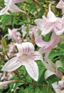 Evergreen shrub, 2–4 metres tall, usually multi-stemmed, with slender branches. Pruning encourages denser growth. Sprays of beautiful, large bell-shaped flowers appear from early spring to summer. The flowers vary from lilac to white with fine purple lines. The sweet nectar attracts honey and carpenter bees and it is the host plant for the pansy butterfly. Protect from buck while young.