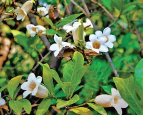 Not for a small space, this vigorous canopy climber has dense clusters of white, perfumed, star-shaped flowers. The black seeds are loved by our forest, fruit-eating birds.
