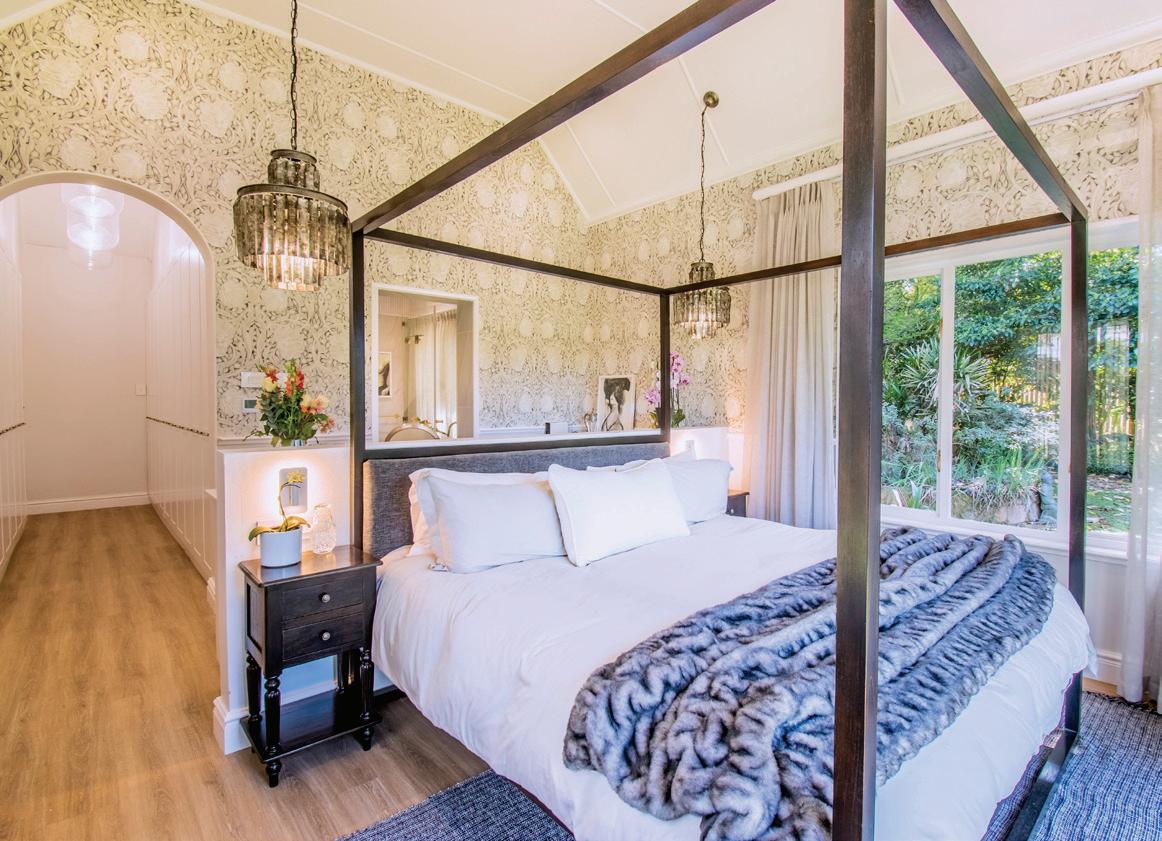 When Kirsty Badenhorst and her team from Kirsty Badenhorst Interiors, were tasked with designing a primary bedroom suite, the goal was to create a sanctuary where elegance and comfort coexist. The inspiration for this design was driven by the desire to craft a space that feels both sophisticated and inviting. The result is a room where a fourposter bed, complemented by gold and black accessories, is a testament to the seamless blend of luxury and warmth.