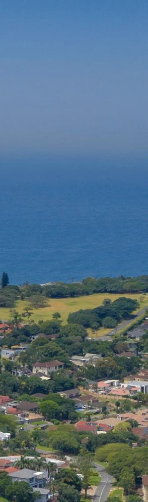 As one of the first gated estates in Ballito, Seaward Estate holds a unique position in the area’s story. While Ballito has grown into one of KwaZulu-Natal’s most soughtafter coastal hubs, it has remained a constant: secure, welcoming and naturally beautiful. Its tree-lined roads and generous greenbelts speak to a development designed with foresight. Indigenous landscaping, rehabilitated wetlands and protected coastal forests form an integral part