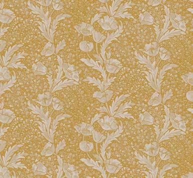 TUDOR POPPY This luxurious and poised botanical was inspired by a small fragment of fabric discovered in the Liberty archive dating from 1895. Bold stylised poppies appear to flow in undulating synergy, within a setting of winding foliage and tiny flowering buds. Paying homage to Liberty’s long-standing association with the Arts & Crafts movement, Tudor Poppy was lovingly restored and carefully reconstructed with delicate shading and soft inky washes. Printed in Italy on 100% linen this fabric is suitable for upholstery, drapery, cushions, and accessories. (Wycombe)