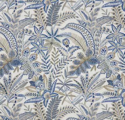 PALAMPORE EMBROIDERY Taken from an antique Tree of Life design within the Liberty archive, Palampore Embroidery has historically appeared as a best-selling scarf design. For this collection, the Liberty Design Studio have lovingly reworked the original artwork into a simpler composition to enhance the striking floral motifs. Embroidered in India by master craftsmen, the design has been imagined into three colourways. With subtle mineral-like lustre and tonal richness, these colour stories are reminiscent of the exquisite plant and insect dyes that originally inspired the design. Suitable for drapery, cushions, and accessories. (Chalfont)
